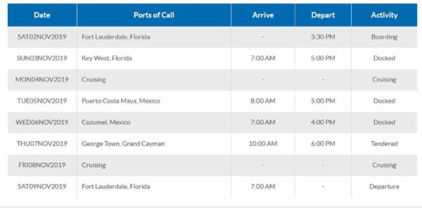 ![]() Departs from Fort Lauderdale, Florida *Passports Are Recommended for All Cruises Classes are held on 'Days at Sea' & at Times Ports of Call are Not Affected |